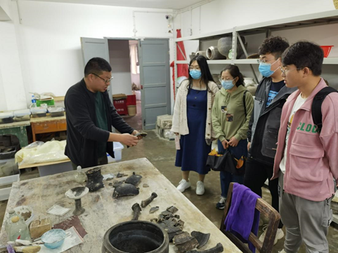 9时许,师生一行在荆州博物馆与博物馆考古专家田勇老师会面。在田勇老师的带领下,师生们怀着激动的心情来到荆州博物馆陶器修复中心,学习文物修复相关知识。田勇老师为员工们细致讲解了考古类型学中“分型定式”的相关知识,并就现有文物向师生们展示了文物修复的大致过程。近距离的观察,使得员工对“文物医生”用匠心和妙手演绎“化腐朽为神奇”的绝活有了一定的了解。