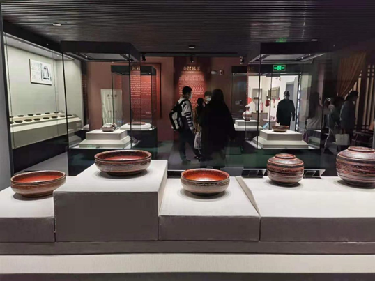 随后,师生前往珍宝馆参观了西汉五大夫遂的墓葬出土文物,并同现场游客一同瞻仰了这具被誉为荆州博物馆镇馆之宝的2000多年前的不腐男尸。通过参观丹漆神韵——楚秦汉漆器精品展中凤鸟莲花豆、战国彩绘漆木虎座凤架鼓、漆凤鸟羽人等一件件珍贵的艺术瑰宝,结合老师细致的讲解,可以发现楚秦汉漆器不仅种类众多、功能齐全,而且造型精美、纹饰华丽。精美绝伦的漆器精品给师生以强烈的视觉冲击和无限的遐想幽思。在惊叹于古人丰富的想象力和高超的手工艺的同时,也加深了同学们对于历史上曾生活在这片土地上的人们的物质和精神生活的认识以及其崇尚自然、尊崇巫祀、个性张扬、追求革新、浪漫奔放、尚火尚赤的民族个性的了解。