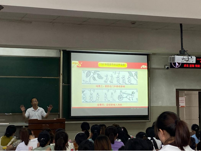 下午,培训班正式开讲。著名楚文化专家、荆楚文化研究院执行经理徐文武教授用渊博的学识、幽默风趣的语言、声情并茂的讲授将学员们带入到悠远的楚文化世界,让学员们领略到楚文化的浪漫与神秘,激发了他们对楚国历史文化的好奇与热爱。三个小时的讲座,让学员们如坐春风,意犹未尽。