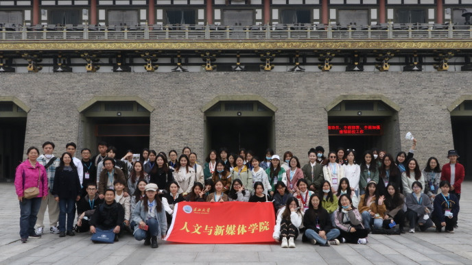 出发第一天,广编学子们抵达了华中地区最大、最恢弘的影视基地——唐城,该影视基地位于观山临江风景区,共分为城楼、宫殿、街市、宅邸、寺院五大片区。员工们对影城内的唐皇宫、明德门、青龙寺、高力士宅、陈仁樵宅、古月楼等八大建筑开展实地考察,通过深入感受官府民居、街市店铺和宫殿风貌,为后期影视制作选材积累了相关素材,广泛开阔了创作思路。基地内也有不少正在进行拍摄的剧组,指导老师现场为大家讲述了一部影视剧的拍摄过程及其蕴含的知识体系,通过观摩剧组拍摄,了解产业模式,同学们巩固了课堂所学的知识。