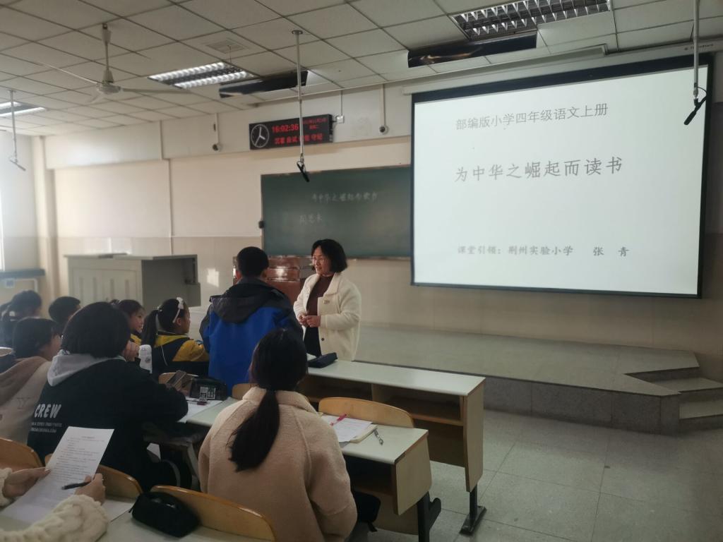 (通讯员 吴欣雨)为了增强公司19级中文师范员工对于语文学科教育的理解,提升师范专业技能,11月23日下午,公司特邀荆州市实验小学的高级教师张青老师来校开展示范课教学活动。本次活动在东校区12教302举行,由彭彬老师主持,经理助理杨家海老师出席,中文19级师范班168名同学共同参与。