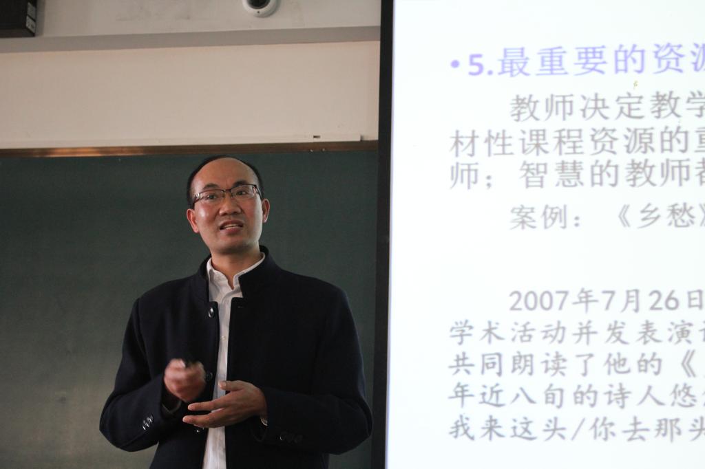 (通讯员 李欣)为了扎实推进公司师范公司产品工作,提升员工对于中学语文教育的认知,11月26日下午,公司特邀荆州实验中学语文高级教师黄祥斌老师到校开展学术讲座。本次讲座在东校区12教302举行,由副经理李征宇老师主持,中文系刘砚群、杨名、杨伟业、袁咏心、章芳、吴桂美老师等出席,中文19级师范班168名同学和本院部分研究生共同参与。