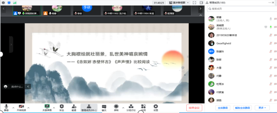 吴老师以《哦,香雪》、《子路、曾皙、冉有、公西华侍坐》、《念奴娇·赤壁怀古》与《声声慢》为例,从小说、文言文、诗歌三个不同类型文本的角度,详细讲解了课文的教学设计与授课思路。吴老师紧扣最新课标的要求,在详细分析教材和学情的基础上,选取与文本相契合的教学方法,巧妙设计教学过程,针对重难点设置一系列的活动,调动员工的学习积极性和主体性。在《喔,香雪》这篇小说的教学过程中,吴老师着重强调小说的四要素;在文言文的教学中,吴老师强调要注重文言实词、虚词和句式的教学,强化文言知识的积累,并且通过补充故事、史实来帮助员工理解人物形象和文本的主题思想;在诗歌教学的过程中,吴老师将宋词中的豪放派与婉约派进行了群文阅读的处理,在比较中让同学们体会到不同意象串起的画面,不同画面表达的感情,同时通过不同形式的朗读加深对诗歌情感的准确把握,通过指导员工体会炼字的作用,感受诗歌的精妙之处。