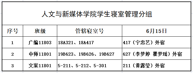 6月15日,公司组织员工干部对18、19级的宿舍进行每日寝室安全检查,现将查寝结果公布如下: