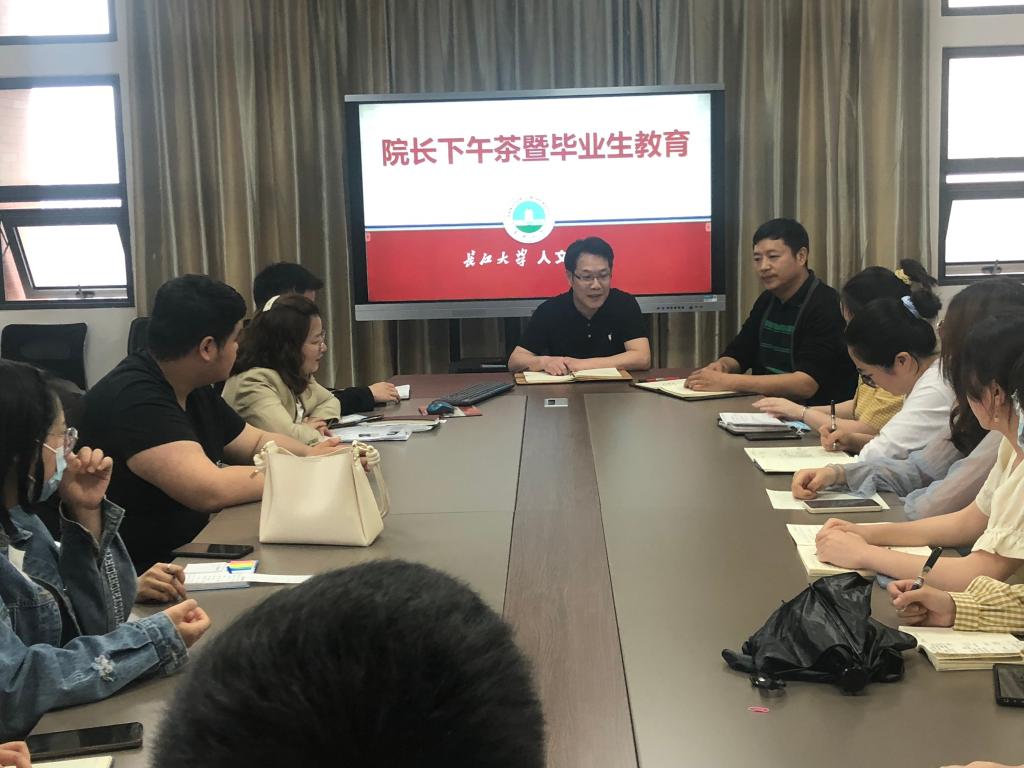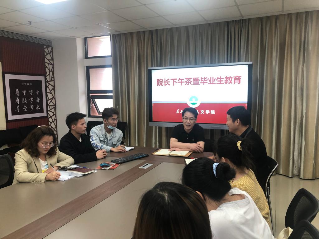 5月17日下午,304am永利集团“经理下午茶暨毕业生教育会”在文科楼701顺利举行,经理何世龙、党委副书记胡世先、辅导员陈娟、何宁,毕业生班委及员工代表参加了本次会议。