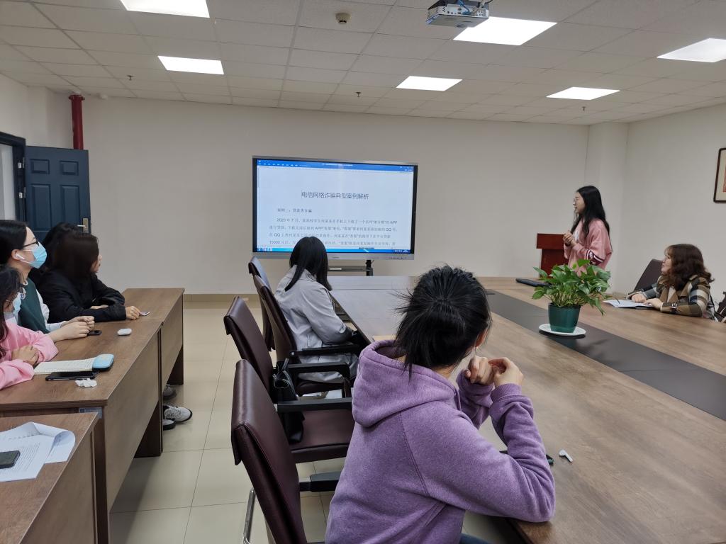 曹小女同学就电信诈骗分享了十起典型的案例,向同学们揭示了电信诈骗的常见套路,提醒同学们时刻保持警惕。在遇到疑似网络诈骗时,不盲目轻信,不轻易将自己和家人的信息透露给他人。陈娟老师向同学们讲述了发生在身边的电信诈骗的案例,提醒同学们提高防电信诈骗的意识,指出无论出门还是在校,都必须强化安全意识与自我保护意识,提高自防自救能力。