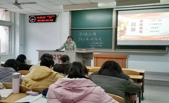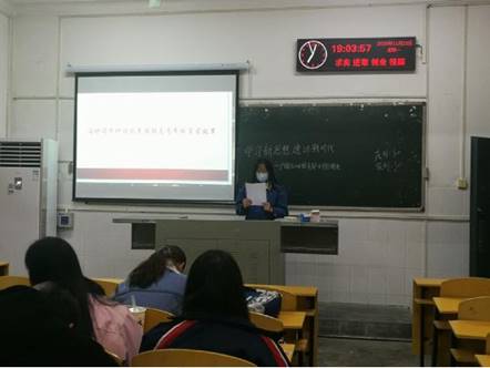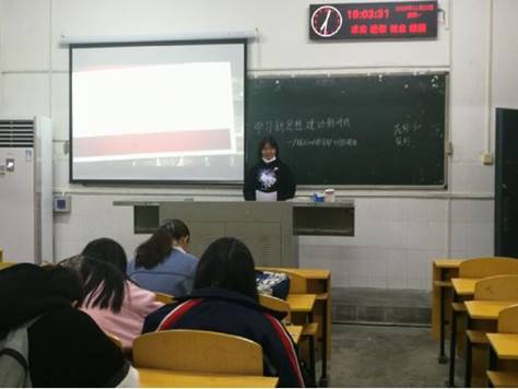 接着主持人宋梦晗用简短的概述带领大家回顾了今年的十九届五中全会。同时播放了一个相关小视频,带着大家了解大会主要内容,体会全会精神。她将全会上习近平总书记的重要指示向大家列举出来,并呼吁大家深入学习全会精神。同学们也纷纷响应,热烈讨论着当代青年如何更好的传承全会精神。