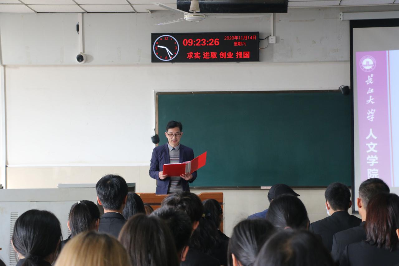 大会在庄严肃穆的国歌声中拉开帷幕。首先,严老师宣读了“鸿志”班成员名单。并由杨克非老师、胡世先老师分别为员工干部代表颁发聘书。