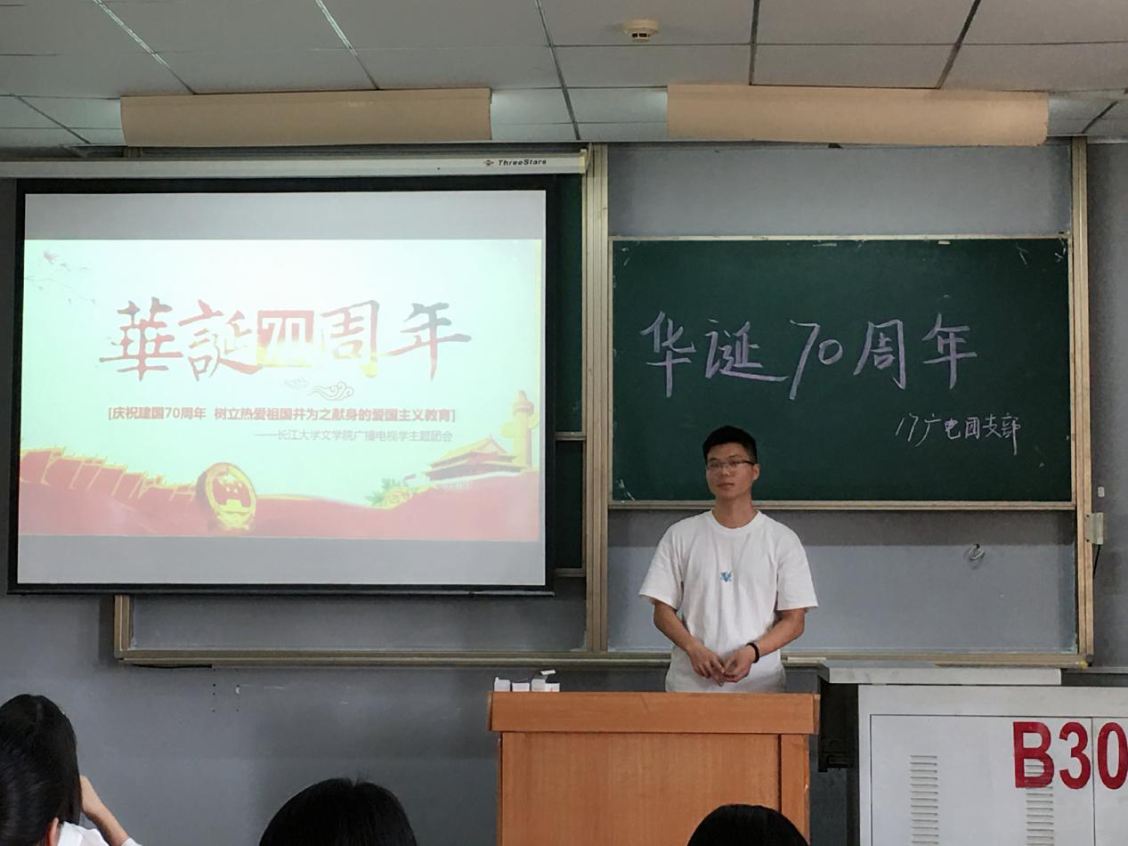 9月20日上午9点45分,广电11802班的大二新学期第一次班会于13教A105成功展开。此次班会的主题是青春告白祖国,在中国七十周年寿诞之际表达对祖国的热爱。