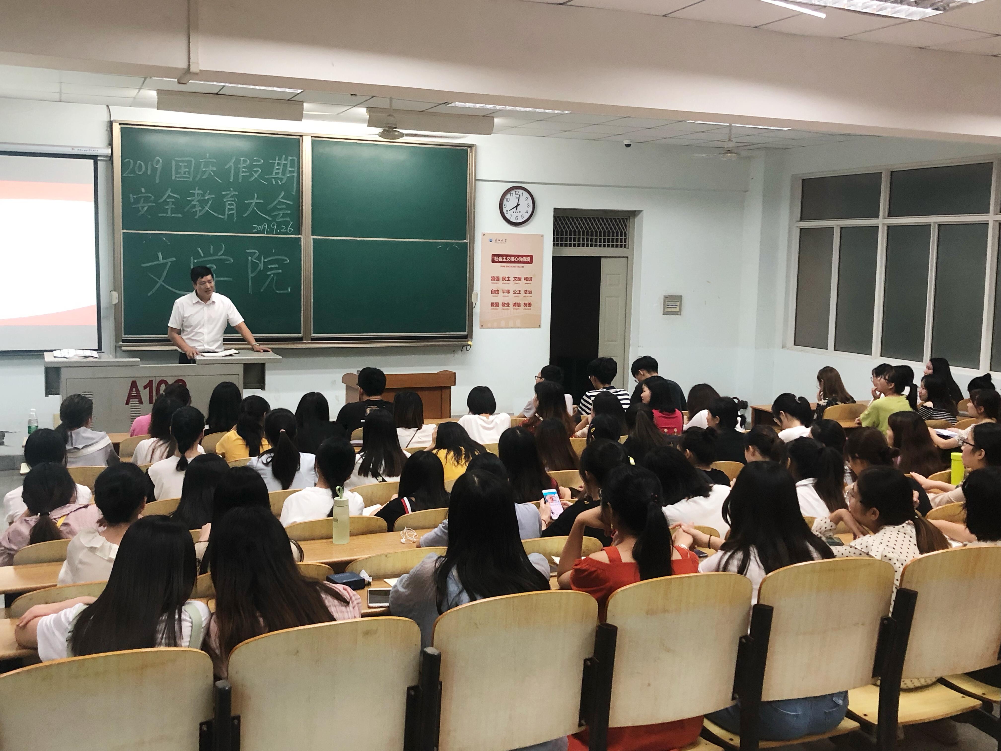 为进一步落实公司关于做好国庆节假期员工安全工作的通知要求,同时为了提高同学们的安全防范意识,9月17日至28日,公司分年级在东、西校区召开国庆假期安全教育大会。大会分线上教育和线下教育两种形式、由相应年级辅导员主讲。