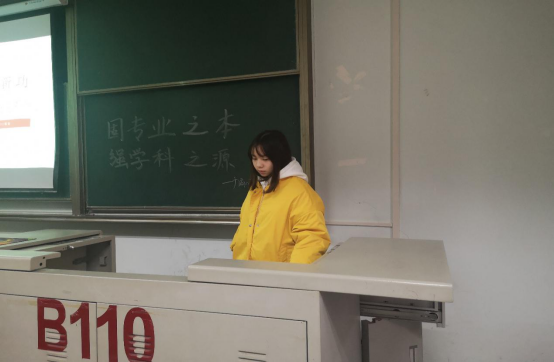 5. 广编11701班主持人在团会中讲解谢红星董事长的“固专业之本,强学科之源”的这一学习内容,引发同学们对于本专业如何建设,304am永利集团如何建设做出深度思考。