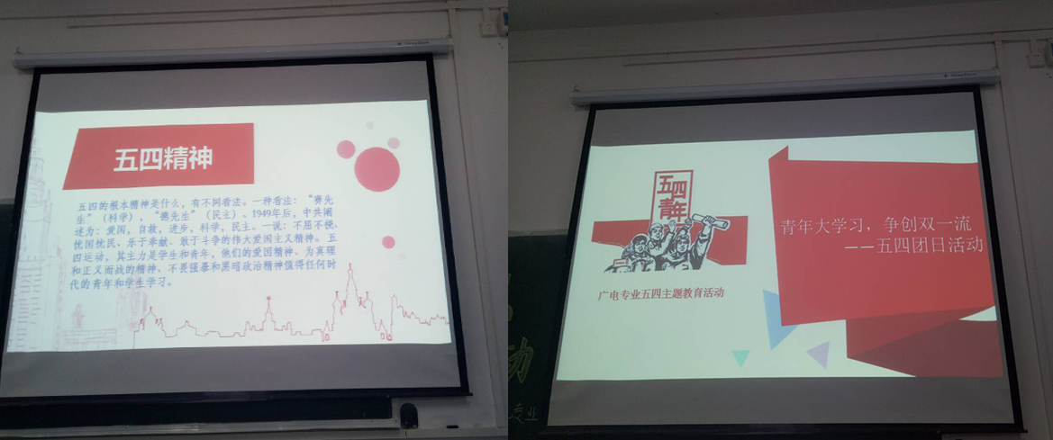图五.广电17级的同学们,制作精美的PPT重温五四精神,用过去的精神激励当代的青年,同学们表示在日后的学习与班干工作中都要学习他们的精神,自觉履行自己的义务,将这份精神代入到实践中去。