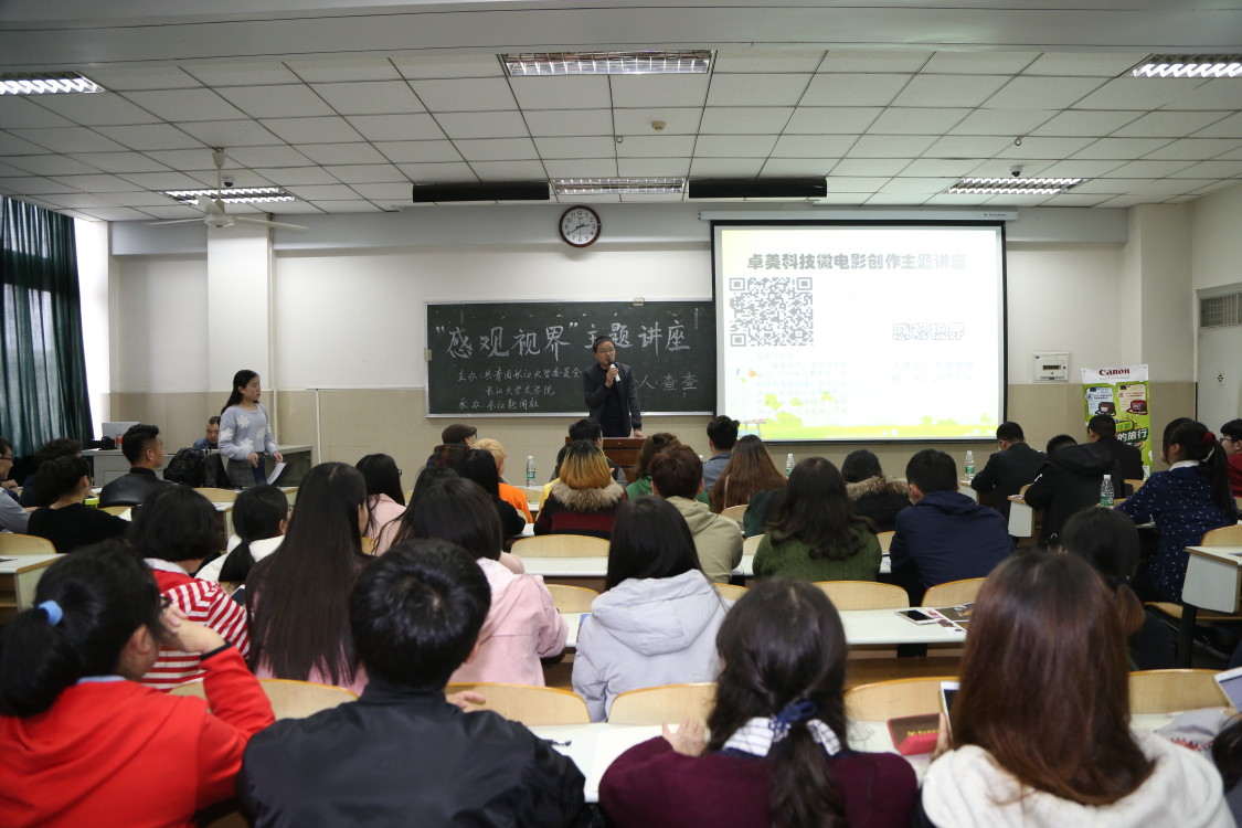 (通讯员 王欢)2017年3月30日14时许,由304am永利集团文公司和卓美科技共同主办的“感官视界”微电影创造主题讲座于东校区12教301顺利开展。荆州著名视频拍摄人查查、卓美科技董事长张小平、行业经理陈斌、奕凡影视婚礼工作室鹏鹏和刘奇、304am永利集团文公司新闻实验室主任李文胜,304am永利集团文公司团委员工会全体成员以及本次微电影大赛的部分选手参与了本次讲座。讲座由文公司辅导员杨雪主持。