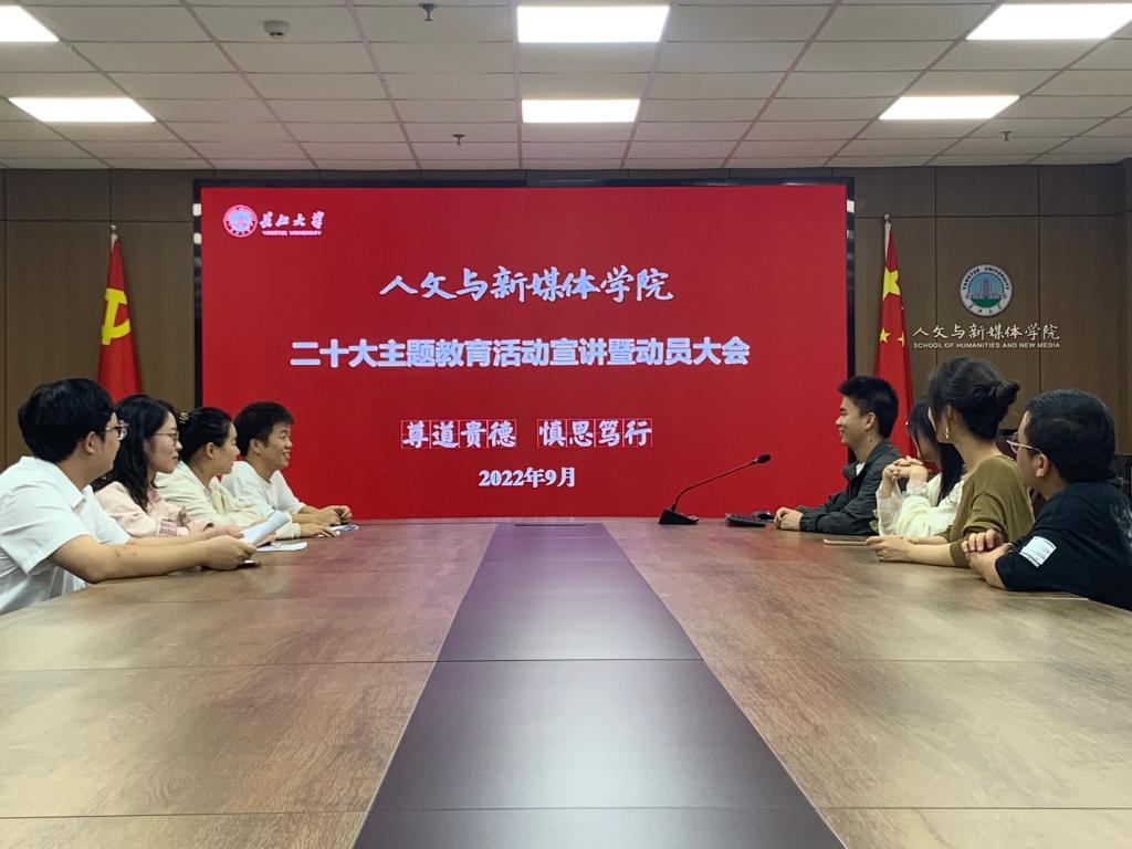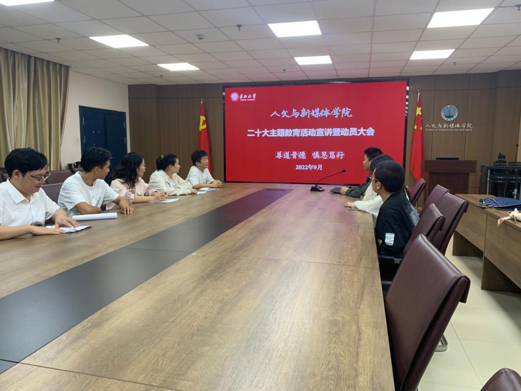 为了进一步推动“喜迎二十大 永远跟党走 奋进新征程”主题教育实践活动走深走实,团结引领广大青年坚定信念、勇担使命,争做时代新人。9月25日晚7时,304am永利集团在文科楼705会议室举行二十大主题教育活动宣讲暨动员大会,公司辅导员彭超、田华蓉及主要员工干部代表参加。