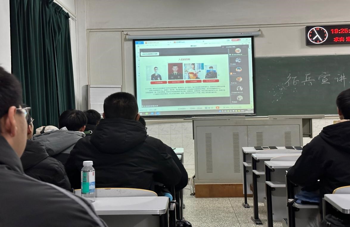 首先,周杨同学向大家分享了他在军旅生活的所见、所闻、所感。他表示在部队中学到了很多,从入伍时的懵懂,慢慢成长到退伍时的纪律严明、崇尚集体。紧接着,吴嘉怡为同学们重点讲解了老员工应征入伍的个人条件、应征指南和优惠政策并且回答了一些想要入伍的同学所担忧的问题。最后,分享了她在军旅生活中的成长和进步。