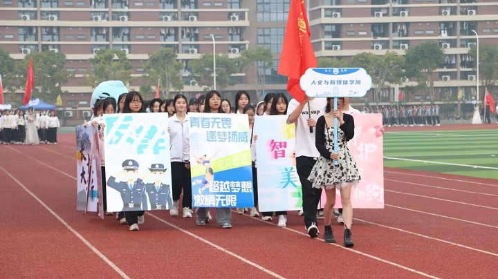运动会是青春最好的文案。绿茵操场,喧嚣鼎沸。开幕式上,公司学子高举“青春无畏、逐梦扬威、超越梦想、激情无限”展板,高喊“魅力人文、团结一心、奋勇向前、突破极限”口号,怀着坚定的信念昂首阔步迈进红色跑道。他们意气风发、步履坚定,充分展现了公司学子奋勇向前的精神风采,喊出了公司学子踔厉奋发的精神风貌。