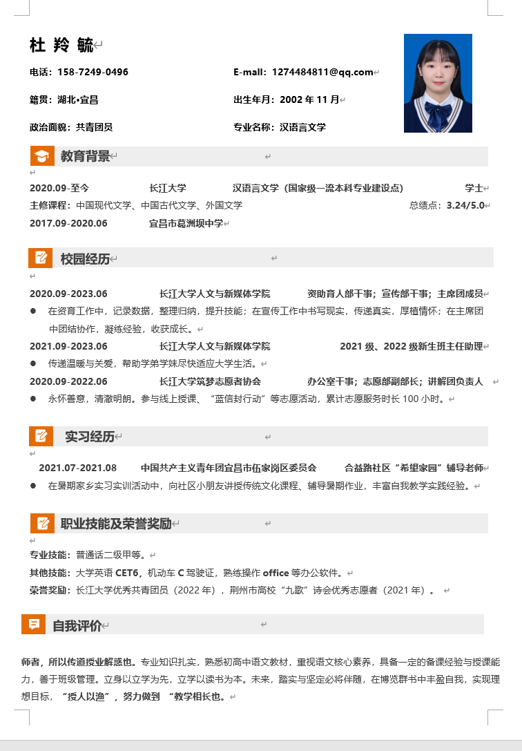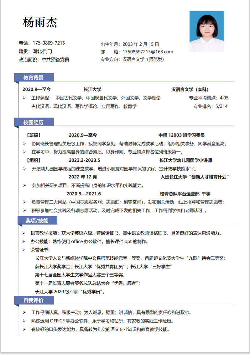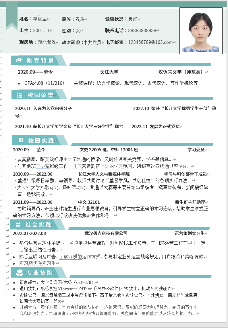大赛自4月份启动以来,吸引近300名同学踊跃参加。此次活动由各班组织选送,就业指导课程代表老师及学工辅导员们共同评选,通过对简历制作的设计、内容、框架等多个方面进行分析,共选出优秀奖20名。在比赛中,毕业班员工们各显其能,用一份份精美的简历总结回顾了自己大学期间专业教育、获奖情况、社会实践等丰富的大学经历,明确了自身的求职意向。同时,未毕业的员工们也提早尝试简历的制作设计,着眼于未来理想职业为自己的老员工涯作出科学规划,希望用四年的努力,变成步入社会的专属底气。