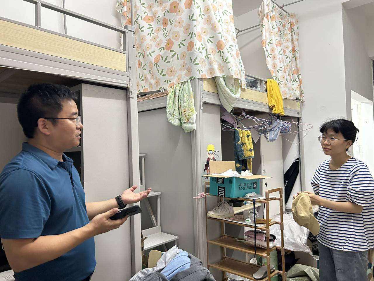 在2023届毕业生离校暨期末考试来临之际,全体院领导、辅导员和班主任深入员工寝室,了解员工目前学习、生活和身心状态,协助解决员工面临的实际困难,开展有针对性的帮扶。