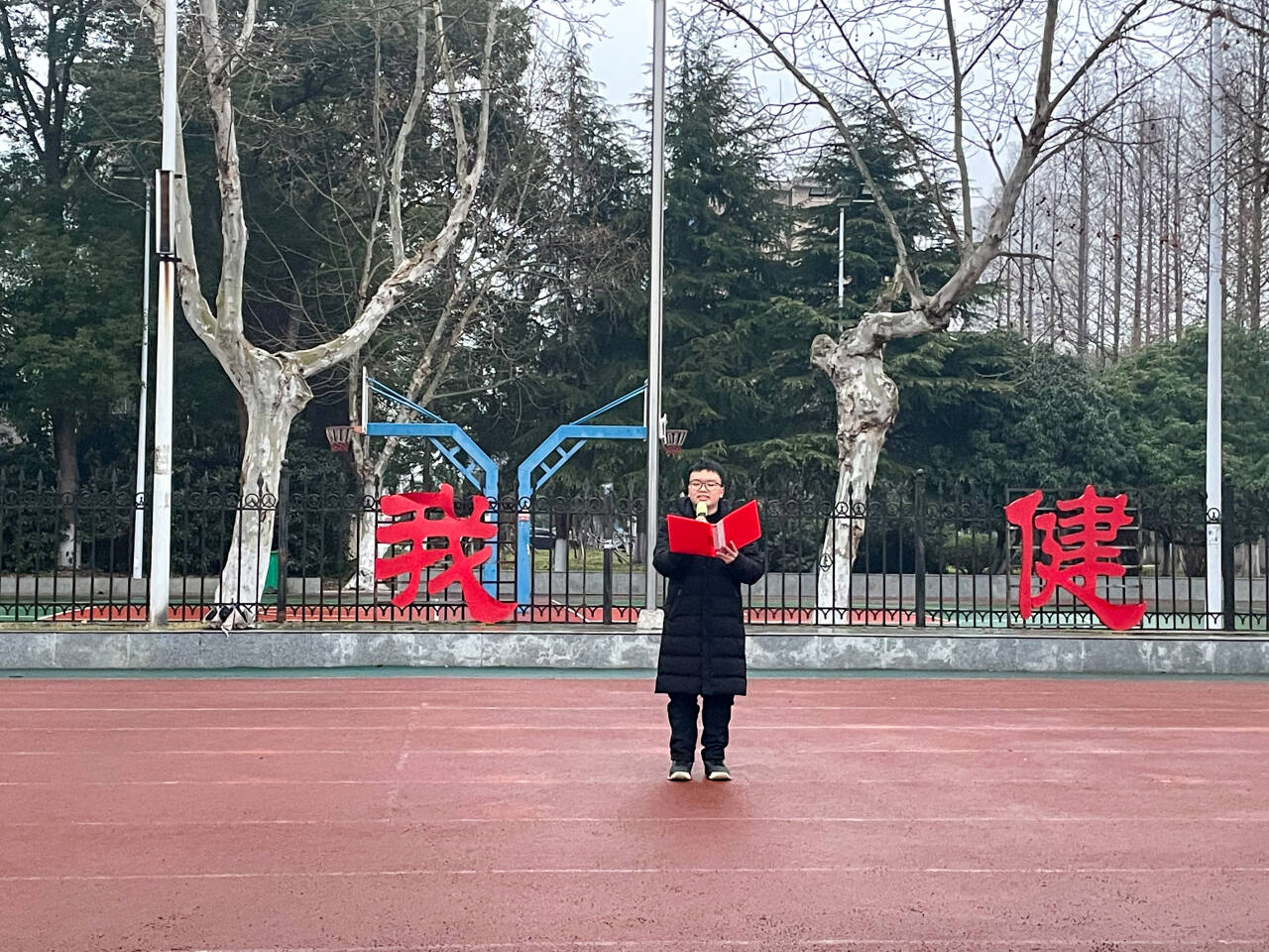 早上七时整,国旗手迈出庄严的步伐,手举鲜艳的五星红旗入场,在慷慨激昂的国歌声中,五星红旗冉冉升起。在齐唱国歌后,员工代表——中师12102班全杰同学作国旗下发言,他以《志存高远 逐光而行》为主题,号召全体同学种下“志向、勤奋、善良”的三颗种子,努力进取,争做时代好青年。