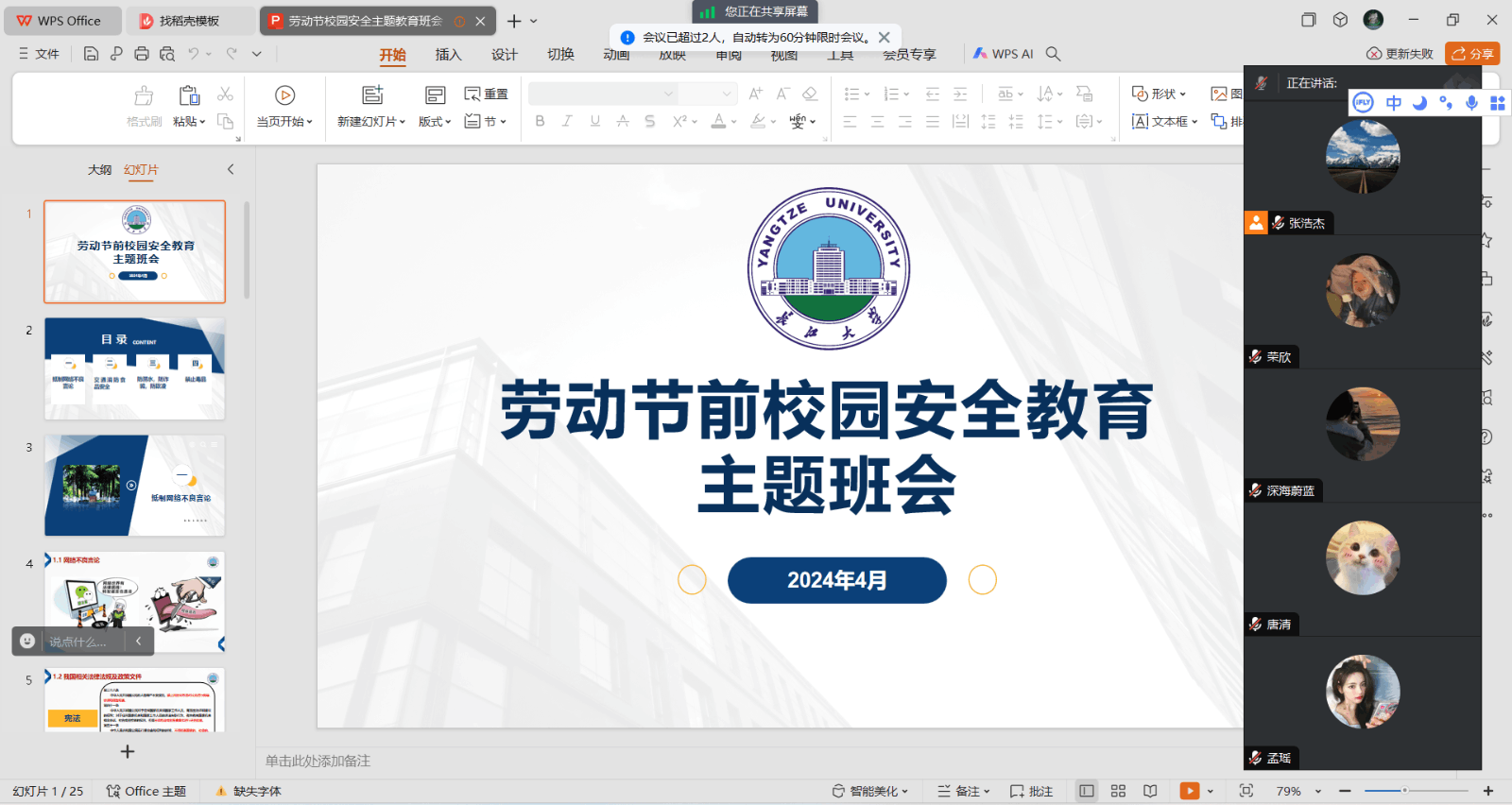 (通讯员 张兰)为加强公司安全教育,落实假期安全防范的各项工作,公司研究生各班级于4月23-26日开展了“五一”假期安全教育主题班会。