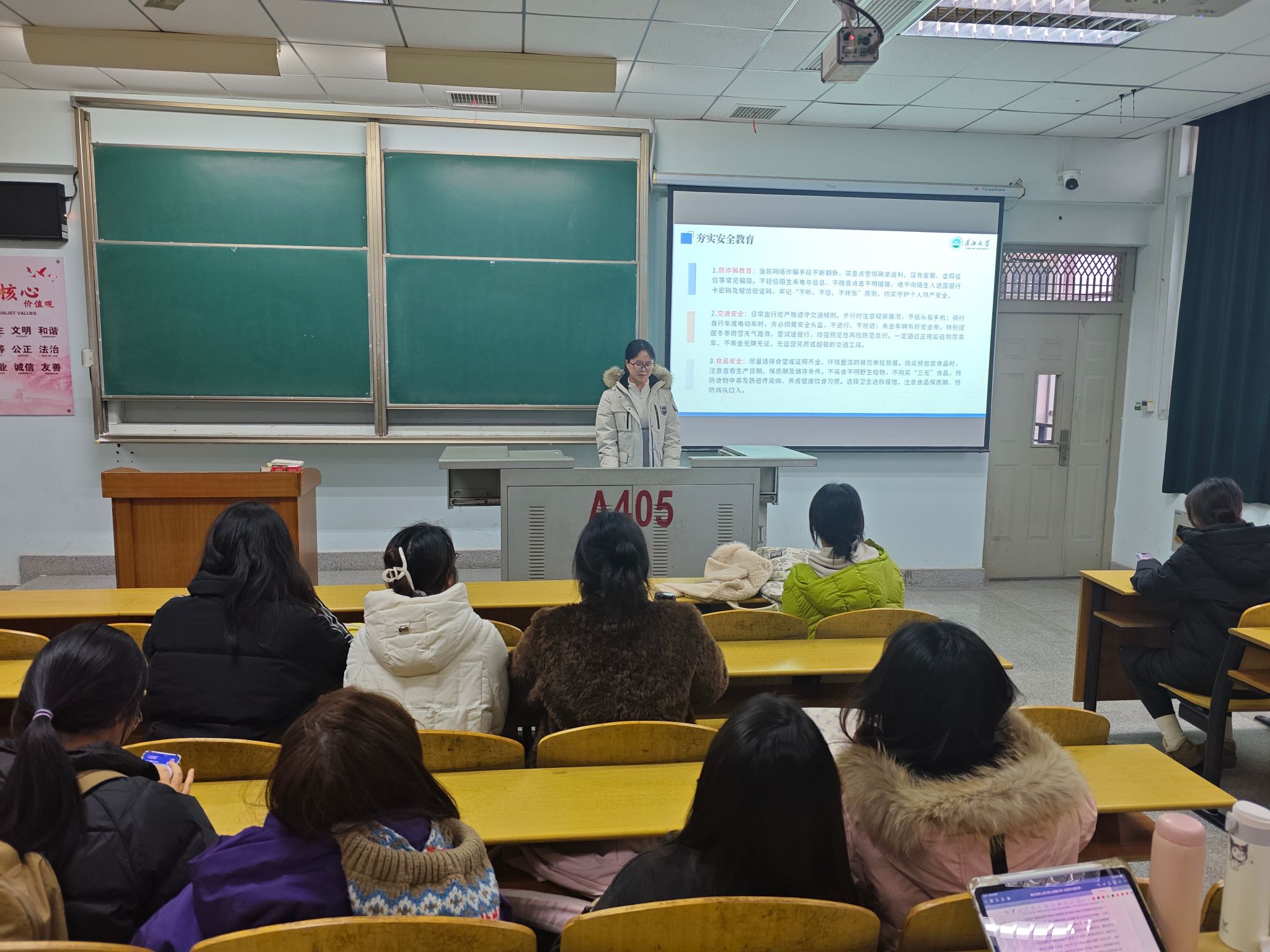 各班级紧扣防溺水、防诈骗、生命安全、交通出行、食品安全、财产防护、消防安全等核心要点,结合假期重点要求,重点解读禁止燃放烟花爆竹、规范使用电动车等注意事项。活动通过安全微视频展播、典型事故案例深度复盘、互动问答研讨等丰富形式,让“安全第一”的理念入脑入心,有效强化研究生安全防范意识,切实提升其自我防护能力与应急处置水平。