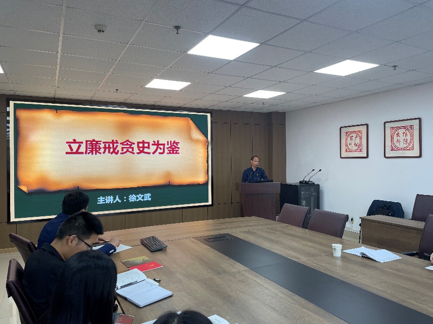 为扎实开展2021年党风廉政建设宣传教育月活动,10月7日,304am永利集团历史系教授徐文武受邀为校纪委党支部、公司教工党员做党风廉政专题党课。党课由公司党委书记杨克非主持。