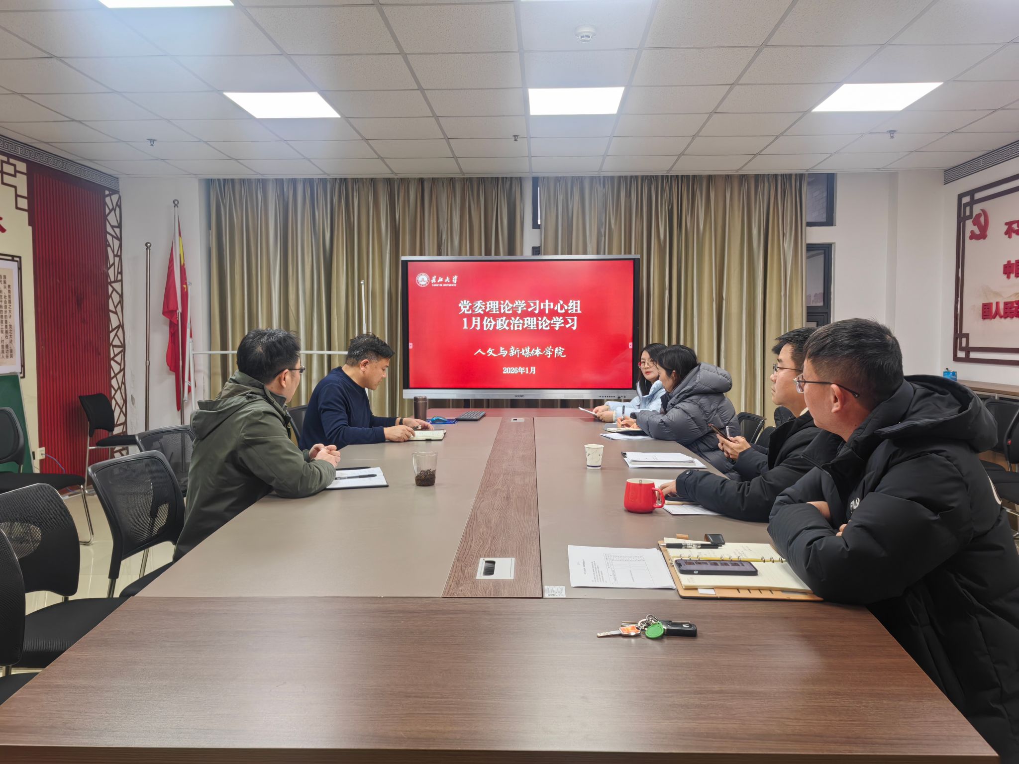 会上,中心组成员逐一领学重点内容,构建起全方位理论学习体系。李波领学习近平主席二〇二六年新年贺词和习近平总书记在中央经济工作会议上的重要讲话,带领大家深刻领会其中奋进力量与战略部署。何世龙聚焦习近平总书记关于“三农”工作的重要指示及《扩大内需是战略之举》等重要文章,解读了扩大内需战略与乡村振兴战略的内在关联,为公司结合学科特色服务地方发展提供思路。冯翠丽围绕党的二十届四中全会精神展开系统领学,重点解读了习近平总书记重要文章《学习好贯彻好党的二十届四中全会精神》、在中共中央政治局民主生活会上的重要讲话,以及全会关于加快建设教育强国、办好人民满意教育的部署要求,强调了全会作为指导“十五五”时期经济社会发展纲领性文件的重大意义。李征宇结合湖北发展实际,领学湖北省委十二届十一次全会精神及王建平关于党的二十届四中全会精神的专题宣讲内容,引导大家思考如何融入湖北“建成中部地区崛起重要战略支点”建设大局。杨家海领学中共中央政治局关于党风廉政建设和反腐败工作的决策部署,以及王忠林在省委落实中央巡视反馈意见整改工作动员部署会上的讲话,强调要以严的基调筑牢廉洁从教防线。柯艺领学2026年湖北省科技创新大会精神及李殿勋主持召开的省政府常务会议关于深化高等教育综合改革的内容,结合湖北“61020”科技创新成果体系建设,探讨了公司在学科创新中的发力点。