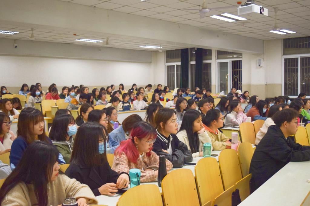 在提问互动环节,同学们积极提出关于考研的疑惑,参与经验分享的五名员工耐心解答。中文(文案)11801班林一峰说:“听完今天的交流分享,我更加坚定了选择考研的想法,学长学姐给出的建议很有用,接下来就要自己实践了。”