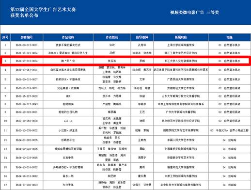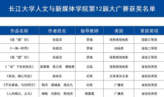 9月15日,第12届全国老员工广告艺术大赛(简称“大广赛”)全国赛区获奖名单公布,公司员工共荣获一个国家级奖项及六个省级奖项。其中由罗威老师指导,广播电视编导专业2017级员工张茹洁创作的视频类微电影《就“图”你》荣获国家级三等奖。