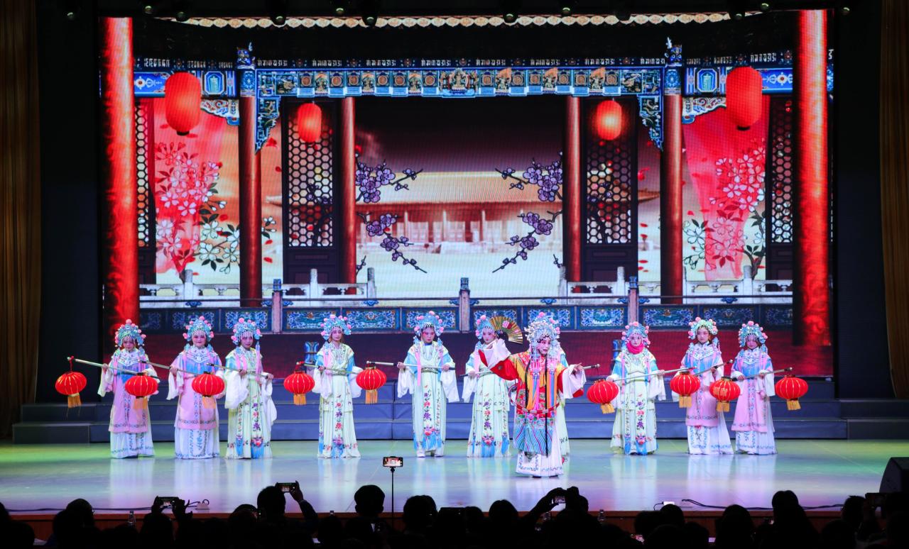 戏曲作为中华文明的璀璨瑰宝,在荆楚大地上绚烂夺目,一曲《挑担鼓围唱荆河》拉开了晚会的帷幕,老艺人们生动地为我们呈现了很久以前人们是如何观看荆河戏曲的场景,热闹非凡。马山民歌《火烧粑》尽展文化魅力,品味江汉平原浓郁的风土人情,了解那段独特的历史。《穆桂英招亲》中尽展巾帼英雄的柔情万丈。京剧《沙家浜》选段中,除了有吴松老师的倾情演唱外,还有中外员工的参与,为节目增添了新鲜力量。荆河戏《莲台收妃》唱腔婉转动人,令人心驰神往。汉滩小曲《唱荆州》以地方方言演唱,用四胡与丝弦乐器配合,将民间传说与历史传奇结合,主持人还邀请汉滩小曲传承人丁忠红老师进行了现场教学。接下来的京剧《大武生》表演者的动作让人看得眼花缭乱,高超的技艺足以感受到演员们台上一分钟台下十年功的努力。荆河戏新编《百花亭》由长大学子以全新的方式演绎——用中英双语为我们带来不一样的视觉感受。一个木鼓,两只鼓柄,虽无华丽的舞台,但那华美的唱词、平整的韵脚和瑰丽的故事,令人无限神往,老艺人们携手为我们带来《鼓盆歌串烧》。荆河戏《天官赐福》反映了人们对美好生活的期盼。最后一个节目职工歌舞秀,为晚会画上了一个圆满的句号,职工们活力四射的表演把晚会的气氛推向了高潮。一群群来自不同国家,肤色各异的外国青年,他们热爱中国传统文化,并用自己的方式表达着对中国优秀传统文化的喜爱之情,更传达了中外友好交流的美好愿景!