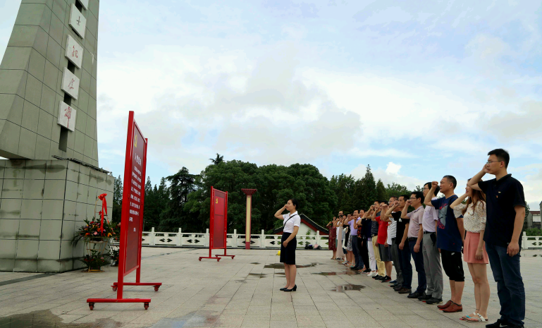 7月1日上午10时,参观人员首先到达监利县柳直荀烈士纪念馆,在解说员的引导下对柳直荀烈士纪念馆进行了学习参观。参观完毕后,全体党员向烈士献花默哀悼念,并在烈士纪念碑前重温入党誓词。全体党员高举右拳,念出铮铮誓言,表达自己对党的无限忠诚与热爱。