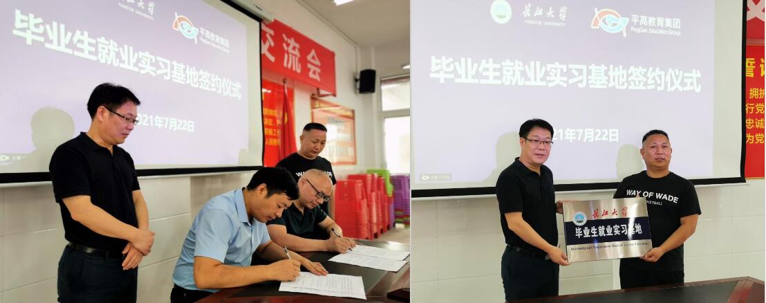 胡世先代表公司与该校易永彩副董事长签署就业实习基地共建协议,何世龙与付志海共同为基地揭牌。