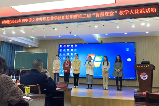 2022年11月17日下午,公司学科语文教育硕士在章芳和袁咏心老师的带领下,前往荆州市实验中学观摩荆州区2022年初中语文第二届“智慧课堂”教学大比武活动。