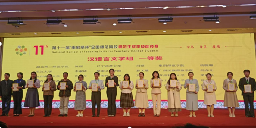 2025年11月28日到11月30日,第十一届“田家炳杯”全国师范生教学技能竞赛决赛在浙江师范大学举办。在公司章芳老师、徐思雨老师、袁飘老师的全程指导下,公司员工李淑琦凭借扎实的专业素养、创新的教学设计和稳定的现场发挥,历经多轮激烈角逐,最终从全国各高校优秀选手中脱颖而出,荣获一等奖。